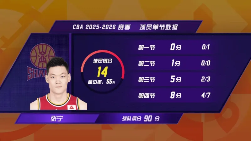 同样本轮伤愈复出的还有山西汾酒队后卫张宁。因伤缺席12场比赛后,张宁在客场对阵北京的比赛中回归。本场张宁出战30分钟,得到14分1篮板2助攻1抢断,正负值+14为全队最高。尤为关键的是,张宁在末节独得8分,最后阶段连续突破、跳投得分,再次于关键时刻助队取胜。